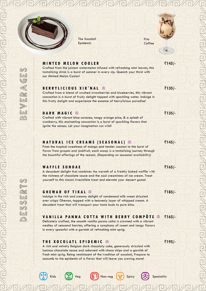 The Mystic Mayans Cafe Menu